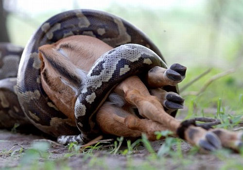 Uma píton conseguiu abater um antílope no Parque Nacional Moremi (Botsuana). A cobra de 2,5 metros devorou a presa inteira, levando 45 minutos para desaparecer com o antílope pela boca.