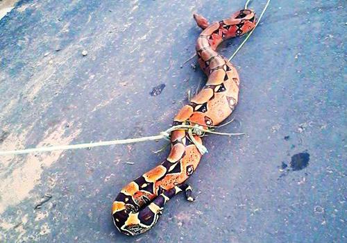 Algumas pessoas ainda tentaram machucar a jiboia, mas dois rapazes identificados apenas por Charles e Davi decidiram por capturar a cobra e reintroduzi-la ao seu ambiente natural.