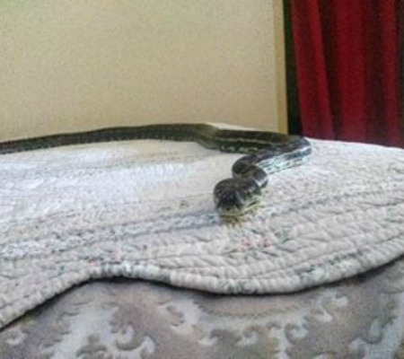 Imagine chegar cansado ao lar após um longo dia de trabalho e, antes de se deitar na cama, dar de cara com uma cobra pendurada no teto. Agora imagine a cobra caindo bem na sua cama. Bem, isso aconteceu na Austrália.