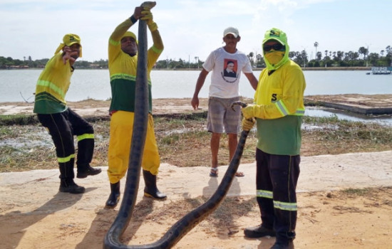 De acordo com informações, uma equipe da Prefeitura de Parnaíba se deslocou até a lagoa e resgatou a cobra, que já havia sido capturada por um morador, que evitou a morte do animal pela população.