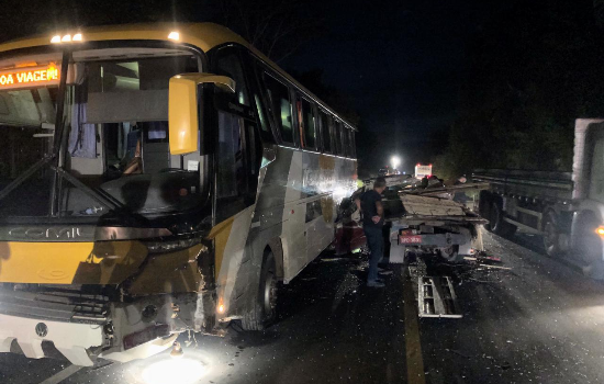 Segundo informações repassadas pela Polícia Rodoviária Federal (PRF), o condutor da caminhonete teria realizado uma ultrapassagem irregular e acabou colidindo contra o ônibus, que vinha em direção contrária.