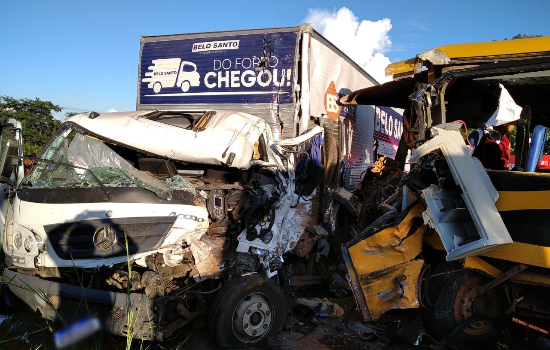 De acordo com a PRF, o acidente deixou uma criança com lesão grave, cinco crianças com lesões leves e duas mulheres adultas com lesões leves. Todos estavam no ônibus.. Já no caminhão, um homem de 51 anos ficou em estado grave e na Hillux dois homens ficaram com lesões graves.