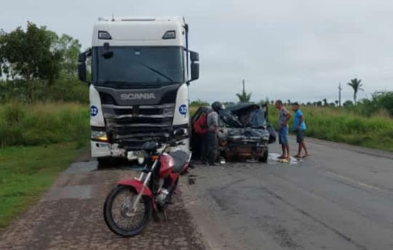Pelas informações da Polícia Rodoviária Federal (PRF), o acidente, tipo colisão frontal, envolveu um Fiat e uma carreta.