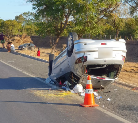 Uma colisão lateral seguida de saída de leito carroçável e capotamento envolvendo dois carros deixou uma mulher gravemente ferida na tarde de domingo (09/08), na BR-316, em Teresina.