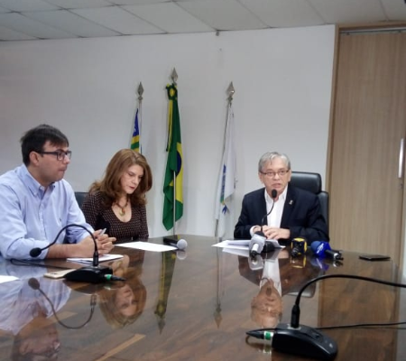 O reitor da Universidade Federal do Piauí (UFPI), Arimatéia Dantas Lópes, durante entrevista coletiva na manhã desta terça-feira (7) no Salão Nobre da reitoria, diz que a instituição enfrentará consequências com o bloqueio de 30% das verbas pelo Governo Federal. O reitor afirmou ainda que 50% dos recursos previstos da universidade serão bloqueados tornado a situação drasticamente preocupante porque o ano letivo estará prejudicado.