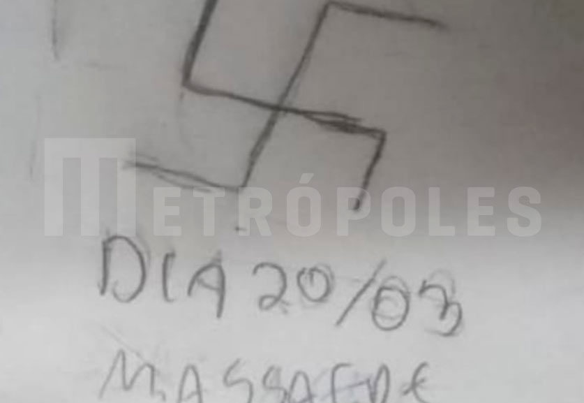 Uma das ameaças mais preocupantes foi a aparição do desenho de uma suástica no quadro de uma sala de aula. Abaixo do símbolo nazista, a frase “massacre em 20/3”. Para não atrapalhar as apurações, o nome da escola não divulgado pelos investigadores da PCDF.