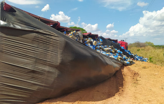 No domingo (24), na rodovia BR-135 em Bom Jesus, policiais rodoviários federais atenderam a um acidente do tipo saída de pista seguido de tombamento, envolvendo um veículo de carga, cujo condutor, um homem de 46 anos, teve lesões leves. O veículo de carga estava carregado com sacas de ração animal.
