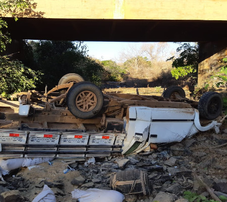 Os policiais verificaram preliminarmente que o condutor perdeu o controle do veículo e saiu da pista, caindo de uma ponte.