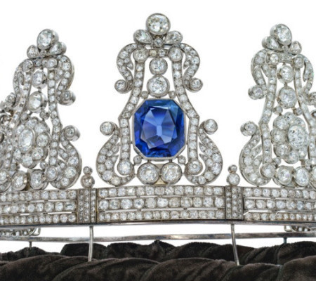 Segundo a descrição da leiloeira, trata-se de uma coroa, datada da década de 1840, cravejada de diamantes e safiras, com "uma notável safira birmanesa no centro".