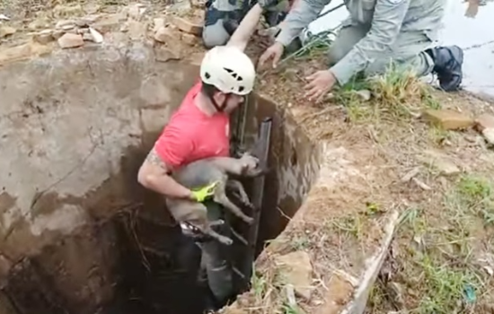 Profissionais de educação que trabalham no local ouviram latidos na área externa e em seguida encontraram um cachorro no poço.