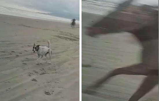 Uma mulher teve o braço quebrado e um cachorro morreu ao serem atropelados durante uma corrida entre cavalos e motos em uma praia no limite entre as cidades Peruíbe e Itanhaém, no litoral de São Paulo. Um vídeo que circula nas redes sociais e foi obtido nesta sexta-feira (31) mostra o momento do acidente.