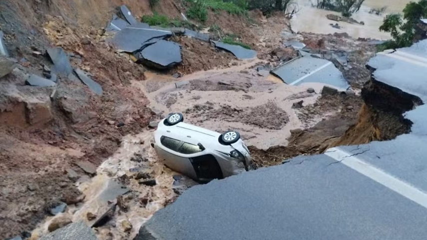 O buraco surgiu entre as cidades de Agronômica e Rio do Sul, 'engolindo' um Gol branco com o casal a bordo. Felizmente, ambos conseguiram escapar por meios próprios e foram auxiliados pelos bombeiros a se colocarem em segurança na encosta.