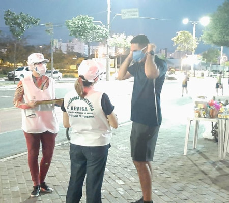 Com a flexibilização da prática de atividade física ao ar livre no município, a Fundação Municipal de Saúde (FMS) está reforçando a fiscalização para garantir uma retomada livre de transmissão da Covid-19. Nesta segunda (27), a equipe da Vigilância Sanitária Municipal esteve na Avenida Raul Lopes, dando orientações e distribuindo máscaras para uso das pessoas que estavam no local.