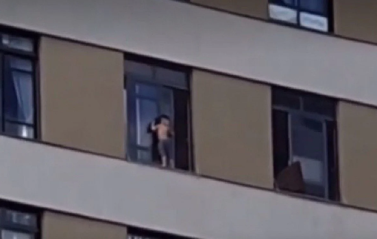 A imagem, divulgada na sexta-feira (12), viralizou nas redes sociais. O vídeo mostra que a criança sobe no parapeito, pelo que parece ser o nono andar do prédio, anda pela estrutura e se apoia na janela. Durante os 21 segundos de duração do vídeo, ninguém aparece para tirar a menino do local.
