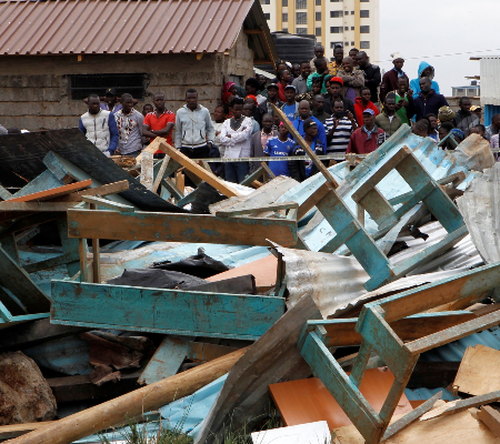Após o incidente, centenas de pessoas se reuniram no entorno da “Precious Talent Top School”, em Dagoretti, uma área pobre onde muitas famílias vivem em casas improvisadas.