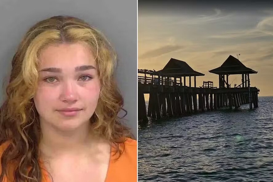 Uma mulher foi flagrada fazendo sexo com um homem em um píer em Naples, Flórida, por volta das 16h30 na segunda-feira (27/5) e tentou escapar da polícia pulando no mar.