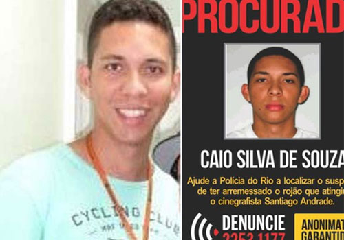 A Polícia Civil divulgou, no fim da tarde desta terça-feira (11), uma nova foto, mais atual, de Caio Silva de Souza, de 23 anos, suspeito de acender o rojão que atingiu o repórter cinematográfico Santiago Andrade, da TV Bandeirantes, durante protesto no Centro do Rio na quinta-feira (6). Uma primeira foto havia sido divulgada pela manhã. O Disque-Denúncia também divulgou um cartaz pedindo informações sobre Caio, que está foragido.