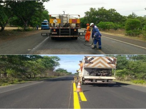 Os trabalhos se concentram no trecho do quilômetro 360, próximo ao município de Altos, onde as equipes fazem reparos na sinalização horizontal da pista.