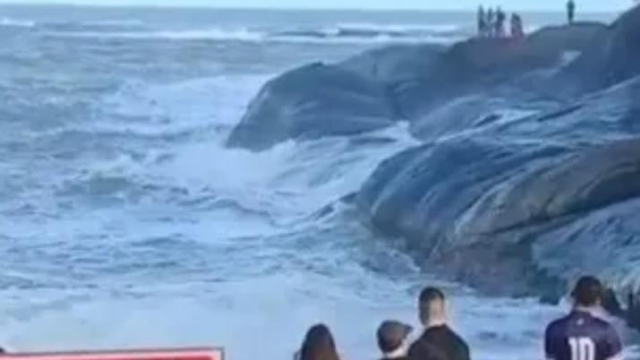 Um vídeo mostra uma placa de advertência informando que a praia não conta com salva-vidas, e outra gravação exibe o mar agitado. Nas redes sociais, moradores de Guarapari alertaram que essa praia é reconhecida por ser perigosa para banhistas, devido à correnteza e à presença de rochas.
