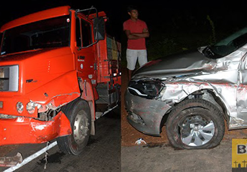 Segundo informações do motorista do caminhão, ele seguia sentido Placa/Cocal e ao desviar de um ciclista que transitava no meio da faixa de rolamento, colidiu na lateral do veiculo que seguia sentido oposto.