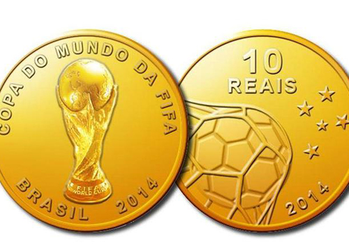 A moeda de ouro, com 4,4 gramas, 16 milímetros de diâmetro e valor de face de R$ 10, custa R$ 1.180. Uma bola na rede orna um dos lados da peça, enquanto a taça de campeão estampa o outro. A tiragem máxima será de 5 mil moedas, embora por ora apenas 2.720 estejam sendo disponibilizadas.