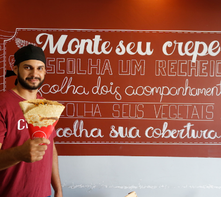 "Sempre busco qualidade. Para mim, a satisfação é perceber que o cliente teve uma experiência gustativa única, e isso só acontece quando ofereço um produto de qualidade ao meu cliente. Somos uma loja que dá autonomia para o cliente montar o seu crepe, além de duas opções de massas e tamanho normal, integral, nos tamanhos médio e grande", relata Annielson da Silva Bernardo.
