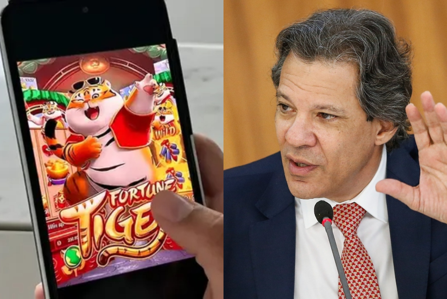 Montagem mostra pessoa acessando "jogo do tigrinho" e ministro Fernando Haddad | Foto: Montagem/MeioNews