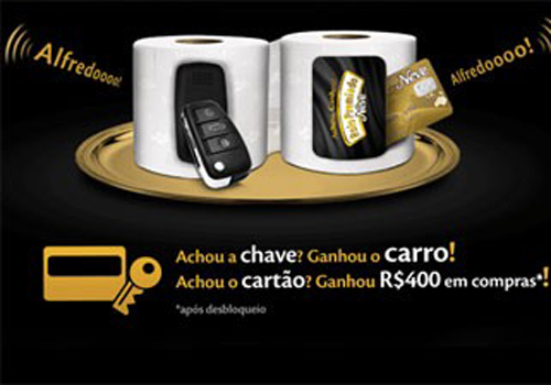 O dispositivo em forma de chave dentro dos rolos premiados tem ainda um botão que ao ser pressionado emite o som ?Alfredoooooo? - nome do mordomo e símbolo da marca.