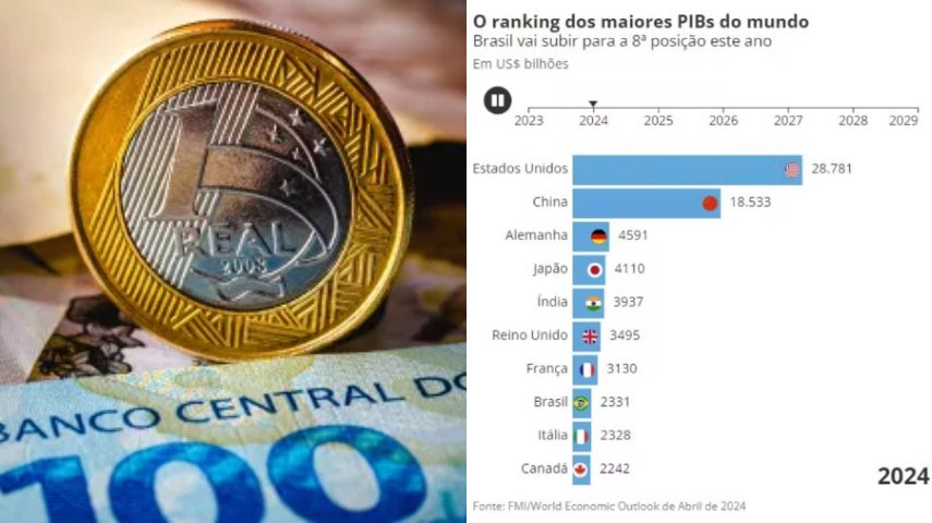 8ª POSIÇÃO: Essa revisão implica que o Brasil não apenas mantém sua posição entre as 10 maiores economias do mundo, mas também deve avançar uma posição neste ano, atingindo o oitavo lugar, de acordo com projeções do economista-chefe da Austin Rating, Alex Agostini. Este crescimento antecipado reflete a resiliência e os esforços do governo Lula (PT) em promover políticas econômicas sólidas e reformas estruturais.