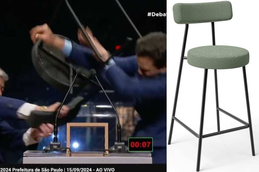 O valor da cadeira usada por José Luiz Datena para agredir Pablo Marçal durante o debate da TV Cultura no último domingo (15) surpreendeu muitos internautas nesta segunda-feira, 16 de setembro. A peça em questão é uma Banqueta Milão, fabricada pela Lyam Decor. Ela possui revestimento em tecido bouclê e é da cor oliva.
