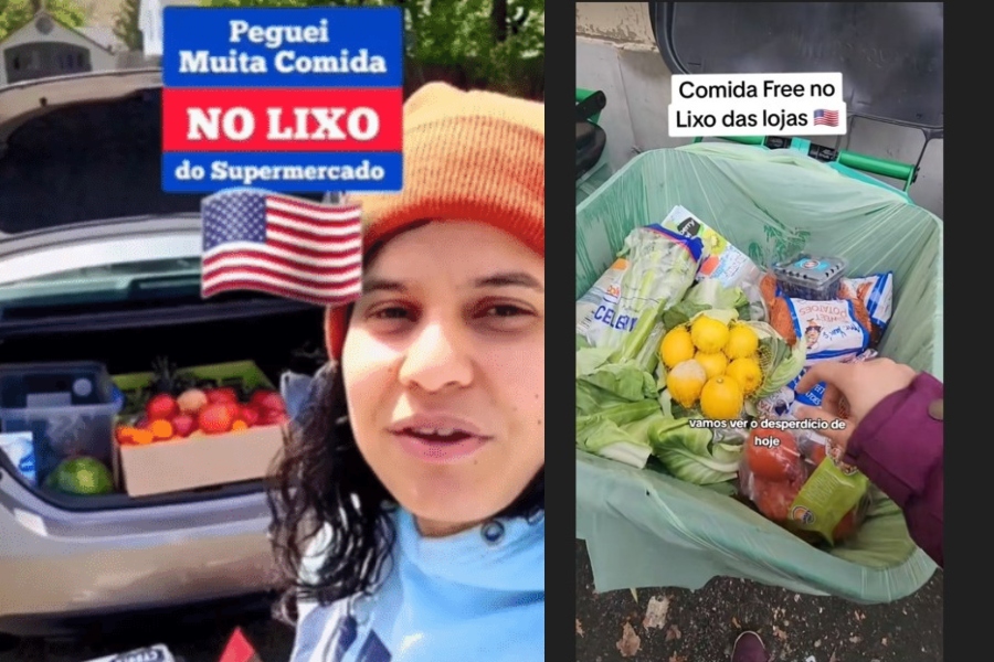 Em busca de formas de economizar, imigrantes brasileiros nos Estados Unidos têm adotado alternativas extremas para lidar com os custos de alimentação e moradia. Renata Myrelli, moradora de Massachusetts, tem compartilhado vídeos em que pratica "dumpster diving", a prática de vasculhar lixeiras de supermercados para resgatar alimentos descartados. Nos vídeos, ela mostra itens como queijos, carnes e frutas que, embora vencidos, considera "reaproveitáveis". Em um de seus vídeos, ela compartilhou alimentos resgatados no valor de mais de US$ 300, comentando que "muita coisa boa é descartada sem necessidade". As informações são do UOL.