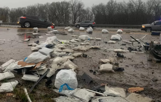 Uma patrulha de polícia dos Estados Unidos atendeu ao chamado de acidente e encontrou uma cena inusitada. Um caminhão perdeu o controle e bateu em dois casos. Com a batida, 226 quilos de maconha ficaram espalhados pela rodovia. O caso aconteceu no condado de Callaway, no estado do Missouri, em 20 de abril, que nos Estados Unidos é considerado o "dia da maconha".
