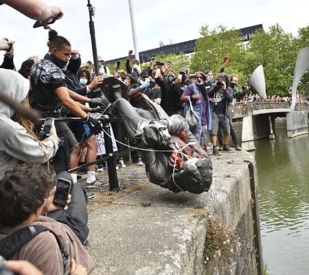 Manifestantes que participaram de um ato antirracista neste domingo (7) em Bristol, no sul da Inglaterra, derrubaram a estátua do traficante de escravos Edward Colston (1636-1721) e depois a jogaram em um rio que corta a cidade. Protestos antirracismo vêm ocorrendo pelo mundo desde a morte de George Floyd, cidadão negro sufocado por um policial branco em Minneapolis, nos Estados Unidos, no dia 29 de maio. As informações são do G1.