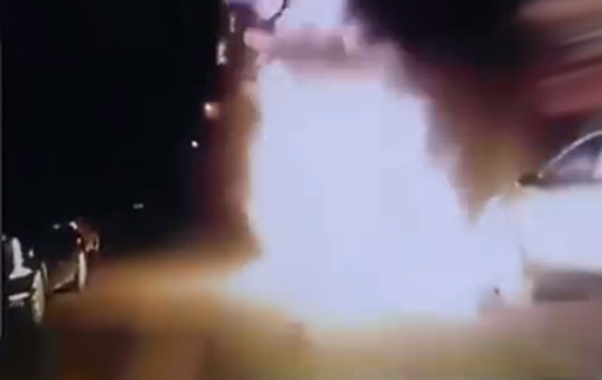 Sem esperar respostas, Shi jogou gasolina e acendeu fogo sobre a vítima. Chamas atingiram uma altura entre 3 e 4 metros. Todo o ataque foi filmado por pedestres.