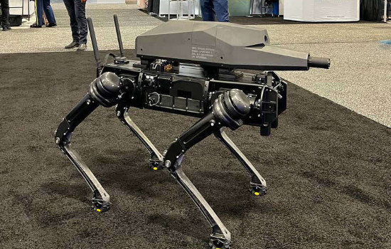 A empresa americana Ghost Robotics apresentou uma versão armada do seu cão robô, já utilizado pelos militares americanos em tarefas de vigilância câmeras.