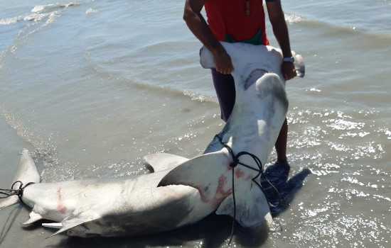 "Quando eu vi, era um tubarão-martelo que já estava morto. Os pescadores estavam trazendo do fundo do mar, com ele agarrado na rede, e colocara na areia lá. Eu cheguei, fiz os registros e coloquei nas redes sociais", contou.