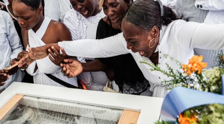 Mulher chorando em velório de uma das vítimas de um ataque a drones durante os conflitos no país | Foto: Clarens Siffroy/ BBC