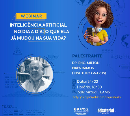 O evento será com o cientista Milton Pires Ramos, engenheiro, doutor em Controle de Sistemas pela Université de Technologie de Compiègne na França e pesquisador do Instituto Gnarus. A mediação será feita por Lucas Pinheiro, engenheiro eletricista do Grupo Equatorial.