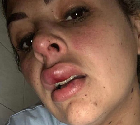 Na manhã desta sexta-feira (4), Romina Romero publicou uma foto em que aparecia com a boca inchada e rosto vermelho com a seguinte legenda: “Vivi uma mentira todo esse ano e meio. Me arruinou a vida e do teu filho”, escreveu.