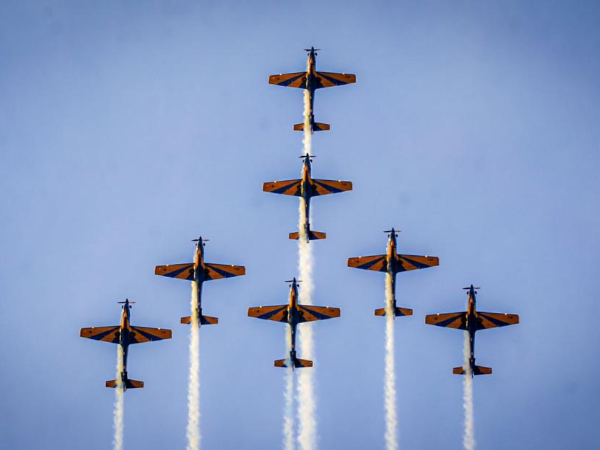 A Esquadrilha da Fumaça, da Força Aérea Brasileira (FAB), retornou aos céus de Teresina após 12 anos e realizou uma mega apresentação na tarde desta sexta-feira (26), que foi acompanhada por diversos pontos da cidade, mas com concentração na arena do Teresina Shopping, na zona Leste de Teresina. O público foi estimado em 5 mil pessoas.