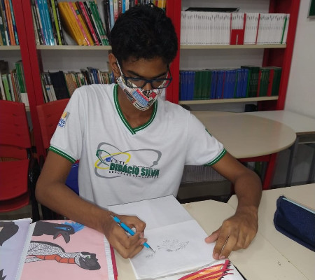 A professora disse ainda que durante o período das aulas, o professor propôs aos alunos que desenvolvessem uma aula atrativa de geometria espacial. “Foi nela que Pedro Henrique desenvolveu uma animação com personagens feitos em cartum, desenhados no papel. Depois ele inseriu falas e movimentos corporais em um cenário gamer, construindo, assim, uma metodologia ativa da educação chamada gameficação”, pontua Sidiane Alves.
