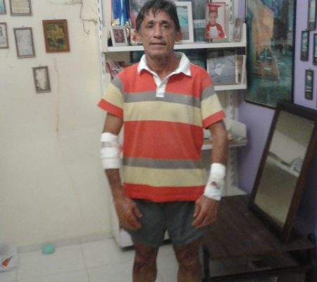 "Tive uma luta corporal e logo imobilizei ele, quando soltei, não queria exterminá-lo, o cão avançou de novo e me defendi com o braço. Já tinha corrido 32 km, estava quase sem força, foi quando apareceu um rapaz de nome Carlão e pediu para que eu subisse na carroceria do carro e me levou ao hospital, e apaguei", detalhou a vítima, que considera ter nova data de nascimento já que o cachorro quase o mata.