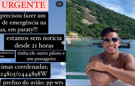 Família, amigos e a namorada do copiloto José Porfírio de Brito Júnior, de 20 anos, estão compartilhando na internet mensagens pedindo por notícias do piloto que está desaparecido desde às 21h de quarta-feira. A postagem nas redes sociais informa que a aeronave, de prefixo PP-WRS, com três pessoas, precisou realizar um pouso de emergência sobre a água na região entre Paraty, no Rio, Ubatuba em São Paulo.