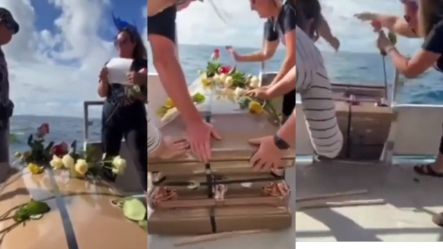 Um vídeo que repercutiu nas redes sociais, neste sábado (12), dividiu opiniões e chamou atenção dos usuários. Isso porque uma família jogou o caixão de uma mulher no mar e gravaram todo o momento. Questionados pela atitude inusitada e curiosa, os filhos relataram que era o desejo da mãe que fizessem isso.