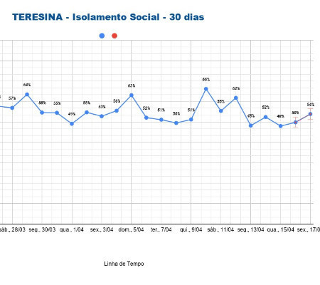 A última sexta-feira (17) registrou índice de isolamento social de 54% em Teresina, um dos menores até agora, ficando atrás apenas da segunda e quarta-feira desta semana, que registraram 48%. A Prefeitura havia antecipado o feriado do aniversário de Teresina, comemorado em 16 de agosto, para ontem com o objetivo de manter a população em casa, porém o resultado não foi o esperado.