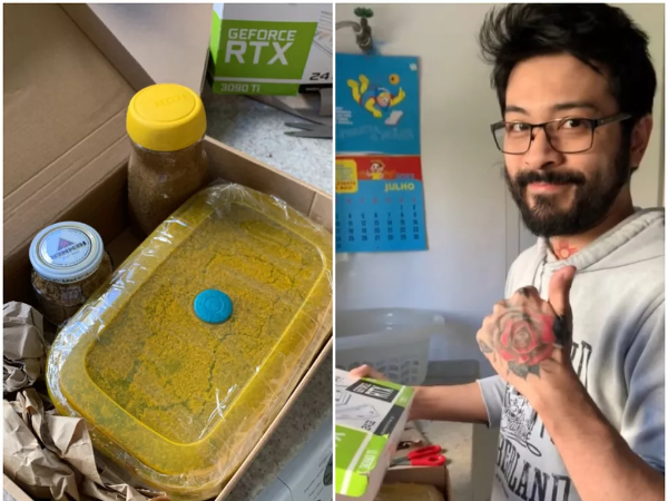 Maurício Takeda, de 34 anos, filho do cartunista Maurício de Sousa, comprou uma placa de vídeo de R$ 14,5 mil pelo site da Amazon, mas foi surpreendido, 24 horas depois, ao abrir a caixa e se deparar com três potes cheios de areia. Ele usou as redes sociais para relatar o fato.