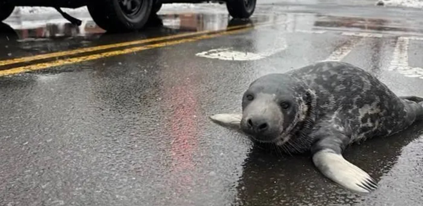 Filhote de foca é encontrado nas ruas de Connecticut, nos Estados Unidos