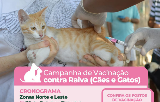 A Fundação Municipal de Saúde (FMS) informa que a segunda etapa da campanha de vacinação antirrábica acontece sábado (06/11) em postos das zonas Sul e Sudeste para aproximadamente 60.095 cães e gatos. Na zona rural, a vacinação acontecerá ainda no mês de novembro e terá divulgação nas localidades.