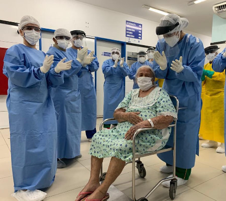 A aposentada Francisca Rodrigues, de 92 anos, foi uma das pessoas que venceram a batalha contra a Covid-19. Apesar da idade e do histórico de hipertensão e problemas cardíacos, ela teve alta do Hospital do Monte Castelo. “Esse problema do Coronavírus está afetando todo mundo. Não quero que essa doença pegue meu povo, nem ninguém. A minha família está recolhida e peço que as pessoas fiquem em casa também, para não adoecer, sofrer e precisar ir ao hospital”, alerta.
