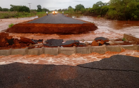 Dois trechos da rodovia PI-256, que liga Curimatá a Morro Cabeça no Tempo, sul do estado do Piauí, se romperam após fortes chuvas na região nos últimos dias.